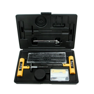 Um ein Loch im Reifen zu reparieren, entfernt man zuerst den Gegenstand, der die Panne verursacht hat, trägt dann Schmier- und Versiegelungsmittel auf die Reibahle auf und rauht den Stichkanal mit dieser auf. So bringt man ihn auch automatisch auf die passende Größe für die Selbstvulkanisierstreifen.